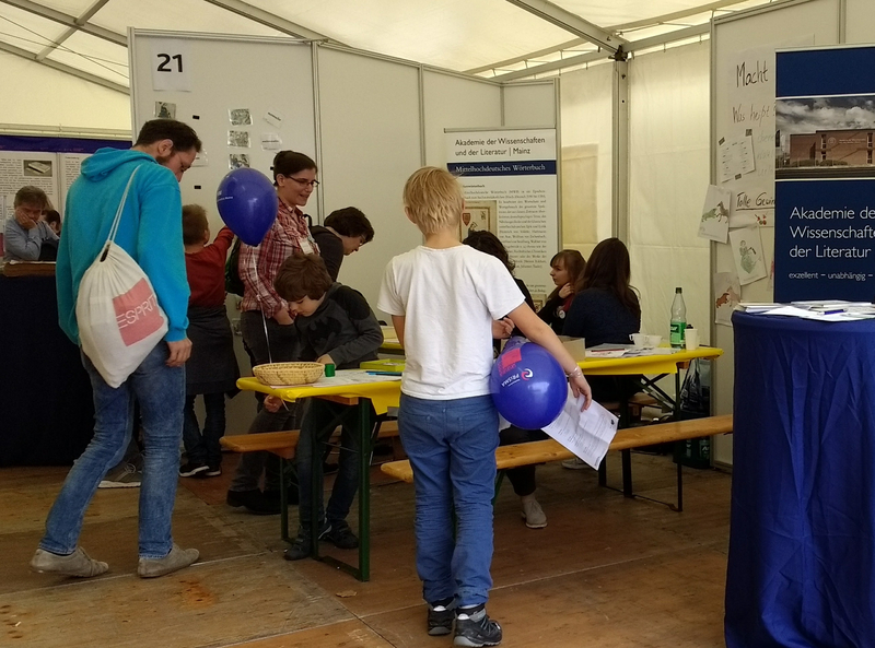 Beim 16. Mainzer Wissenschaftsmarkt der Mainzer Wissenschaftsallianz präsentierte sich die Akademie der Wissenschaften und der Literatur Mainz in diesem Jahr in Begleitung ihres Projektes ›Mittelhochdeutsches Wörterbuch‹.
