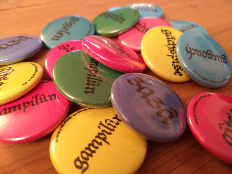 Passend zum Themenjahr ›Mensch und Umwelt‹ gewährten die Mitarbeiterinnen des Akademievorhabens zahlreichen Besuchern ihres Standes Einblicke in die Thematik des Wortschatzes und Wortgebrauchs des Mittelhoch-deutschen: Von a wie ackerganc bis z wie zazâ wurden passend zum diesjährigen Thema des Wissenschaftsmarktes ›Mensch und Umwelt‹ Aspekte des mittelalterlichen Lebens in spielerischer Form dargeboten und diverse Mitmachangebote von Interessenten aller Altersklassen angenommen. Wie schon in den letzten Jahren erfreute sich das Ausmalen von Rittern, Damen und Drachen bei den Kleinen großer Beliebtheit. Erste Erfahrungen konnten Interessenten mit mittelhochdeutschen Begriffen, die in einem Zuordnungsspiel mit den passenden Szenen aus mittelalterlichen Handschriften verbunden werden sollten, sammeln. Besonderen Anklang fand außerdem die Buttonmaschine, bei der Buttons mit mittelalterlichen Buchstaben selbst gestaltet werden konnten.