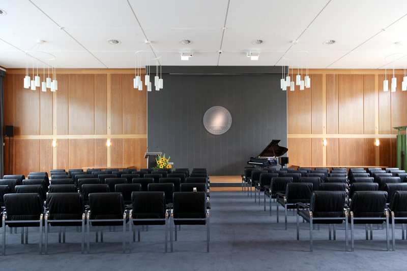 Der Plenarsaal der Akademie wurde 1960 nach einem Entwurf des Architekten und Akademiemitglieds Walter Henn errichtet. Der Saal kann für Veranstaltungen gebucht werden. Er kann hier virtuell besichtigt werden.