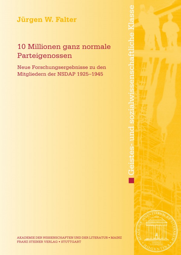 Falter, Jürgen W.: 10 Millionen ganz normale Parteigenossen. Neue Forschungsergebnisse zu den Mitgliedern der NSDAP 1925–1945. Stuttgart: Steiner 2016 [Abhandlungen der Geistes- und sozialwissenschaftlichen Klasse Nr. 4/2016]. ISBN 978-3-515-11490-5 (Print) - ISBN 978-3-515-11495-0 (E-Book)