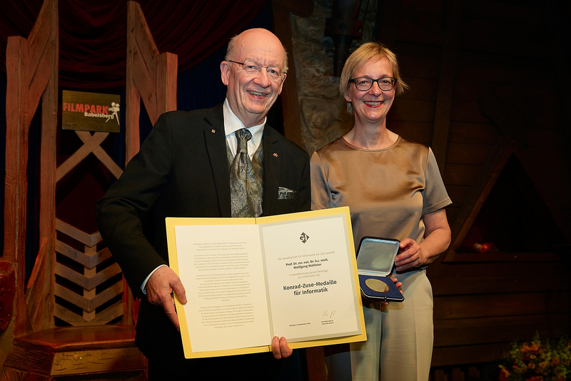 Professor Dr Dr h.c. mult. Wolfgang Wahlster, member of the Academy of Sciences and Literature | Mainz, was honoured with the Konrad Zuse Medal of the German Informatics Society (GI) for his life's work in computer science. The award ceremony took place on 17 September 2025 at the Community Dinner of the INFORMATIK FESTIVAL 2025 in Potsdam.