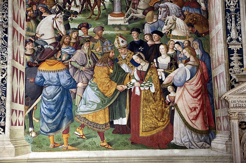 Bild: Pinturicchio, liberia piccolomini, 1502-07 circa, Enea Silvio, vescovo di Siena, presenta Eleonora di Portogallo all'imperatore Federico III 06