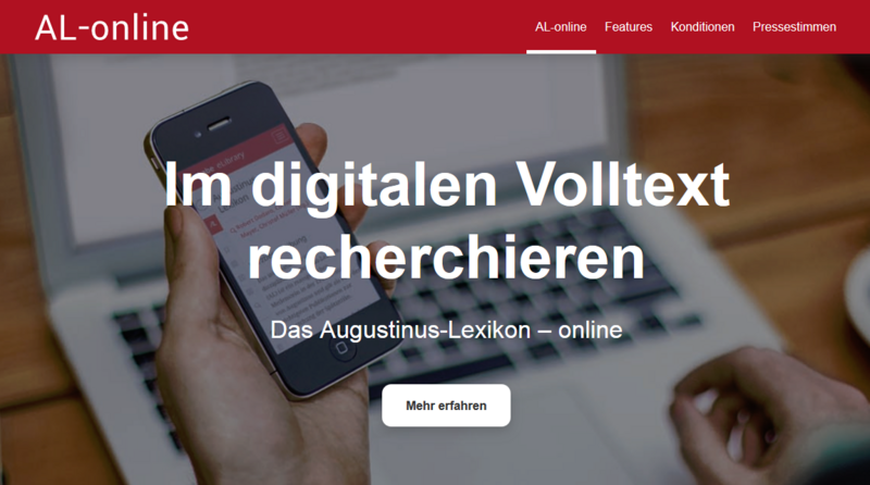 Das Akademienvorhaben ›Augustinus-Lexikon (AL)‹ ist ab sofort auch digital verfügbar. Bei dem ›AL-online‹ handelt es sich um eine strukturierte Volltext-Datenbank mit komfortablen Recherche-, Navigations- und Exportmöglichkeiten, die der Schwabe-Verlag über seine eLibrary realisiert.