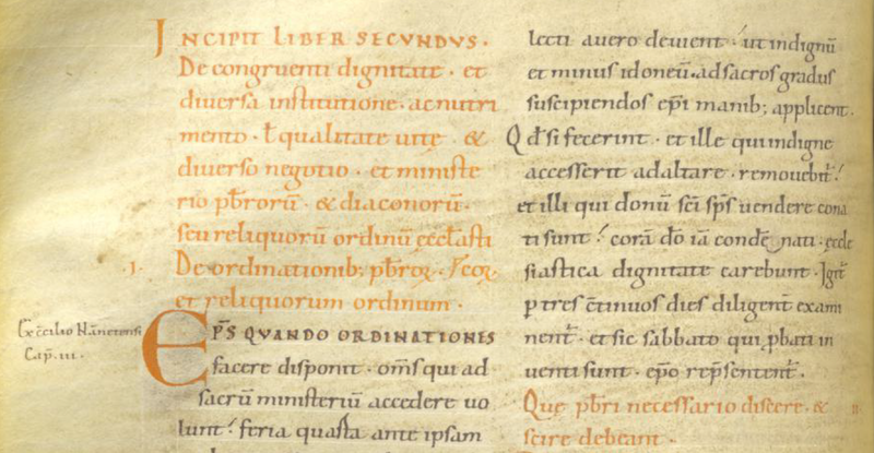 Decretum Burchardi, Anfang Buch II (Universitätsbibliothek Johann Christian Senckenberg Frankfurt am Main, Ms. Barth. 50, fol. 49v)