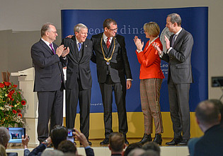 »Die Abschiedsrede meines Vorgängers Jörg Hacker hat mir zweierlei erneut deutlich vor Augen gefĂ¼hrt: erstens, welch hohe Verantwortung der Leopoldina-Präsident trägt, und zweitens, welch vielfältige Chancen er hat, die Wissenschaft und ihren Dialog mit der Gesellschaft voranzubringen«, so Gerald Haug in seiner Antrittsrede. In seiner Ansprache betonte Haug unter anderem die Wichtigkeit der Themenbereiche Klimawandel, Digitalisierung und globale Gesundheit. Gesellschaftlich bedeutende Themen mĂ¼ssten »auf nationaler wie internationaler Ebene« innerhalb kurzer Zeit »selbstverständlich, unabhängig und verlässlich« bearbeitet werden können, betonte Haug.
