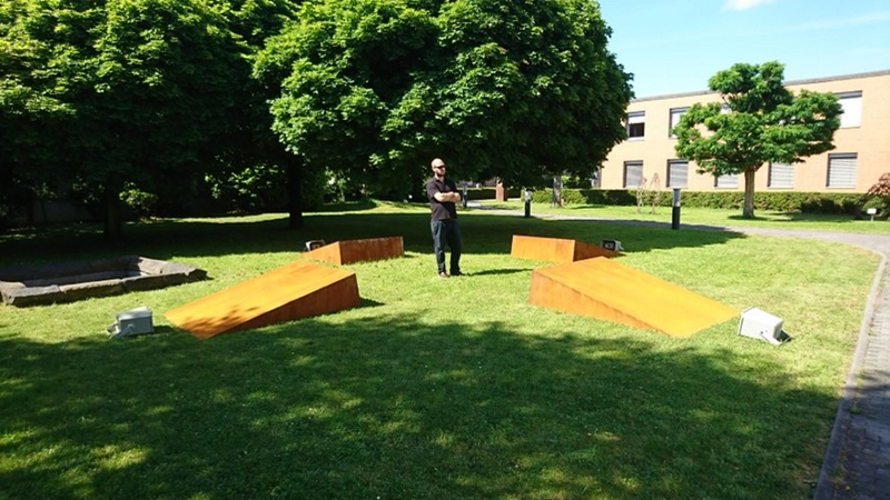 Quasi inmitten Europas sind so Wellen aus vier Himmelsrichtungen zu hören, die sich akustisch an vier Stahlkeilen brechen. Die höchst unterschiedlichen Klänge des Meeresrauschens und die Skulptur ermöglichen dem hörenden Betrachter eine ganz eigene Grenzerfahrung und lenken gleichzeitig den Blick darüber hinaus. Es öffnet sich ein Raum für eigene Gedanken und Reflexion; in diesem können wir uns ganz persönlich auf die Frage einlassen: Was sind die Grenzen Europas?