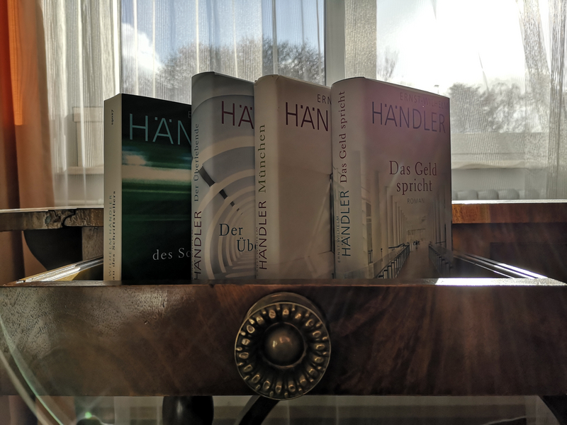 Ernst-Wilhelm Händler, 1953 geboren, lebt in Regensburg und München. Er schloss ein Studium der Philosophie und Wirtschaftswissenschaften mit der Promotion zum Dr. rer. pol. ab. Als Unternehmer begann er parallel mit dem Schreiben. 1995 erschienen seine ersten Erzählungen ›Stadt mit Häusern‹ (bei der Frankfurter Verlagsanstalt), 2019 sein bisher letzter Roman: ›Das Geld spricht‹ (im S. Fischer Verlag). Mit ›Versuch über den Roman als Erkenntnisinstrument‹ hat Ernst-Wilhelm Händler eine eigene Kulturtheorie vorgelegt, die selbst Züge eines Kunstwerks trägt. Darüber ­hinaus schreibt er Essays über ökonomische, gesellschaftliche und künstlerische Themen. Für seine von der Kritik hoch gelobten Romane erhielt er den Erik-Reger-Preis, den Preis der SWR-Bestenliste, den Kulturpreis der Stadt Regensburg und den Hans-Erich-Nossack-Preis. Seit 2014 ist er Mitglied der Akademie der Wissenschaften und der Literatur.