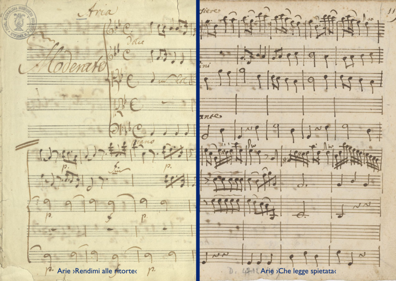 Links: Christoph Willibald Gluck, Arie ›Rendimi alle ritorte‹ aus dem Pasticcio ›Arsace‹ (Hamburg 1748), Musik- och teaterbiblioteket - The Music and Theatre Library of Sweden, Stockholm