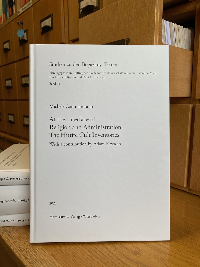 In der zum Projekt ›Das Corpus der hethitischen Festrituale‹ (HFR) gehörigen Reihe ›Studien zu den Boğazköy-Texten‹ wurde ein neuer Band von Projektmitarbeiter Dr. Michele Cammarosano veröffentlicht. Der Band 68 »At the Interface of Religion and Administration: The Hittite Cult Inventories« (mit einem Beitrag von Adam Kryszeń) erschien beim Harrassowitz Verlag.