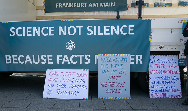 Der ›March for Science‹ ist eine international angelegte Großdemonstration, die sich für Wissenschaftsfreiheit und gegen ›alternative Fakten‹ ausspricht. Sie findet seit 2017 in mehr als 600 Städten weltweit statt.