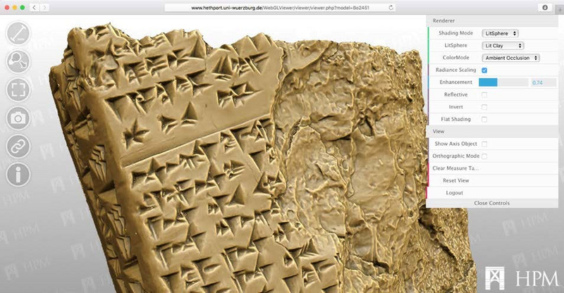 3D-Modell eines Tontafelfragments, dargestellt in Cuneiform WebGLViewer