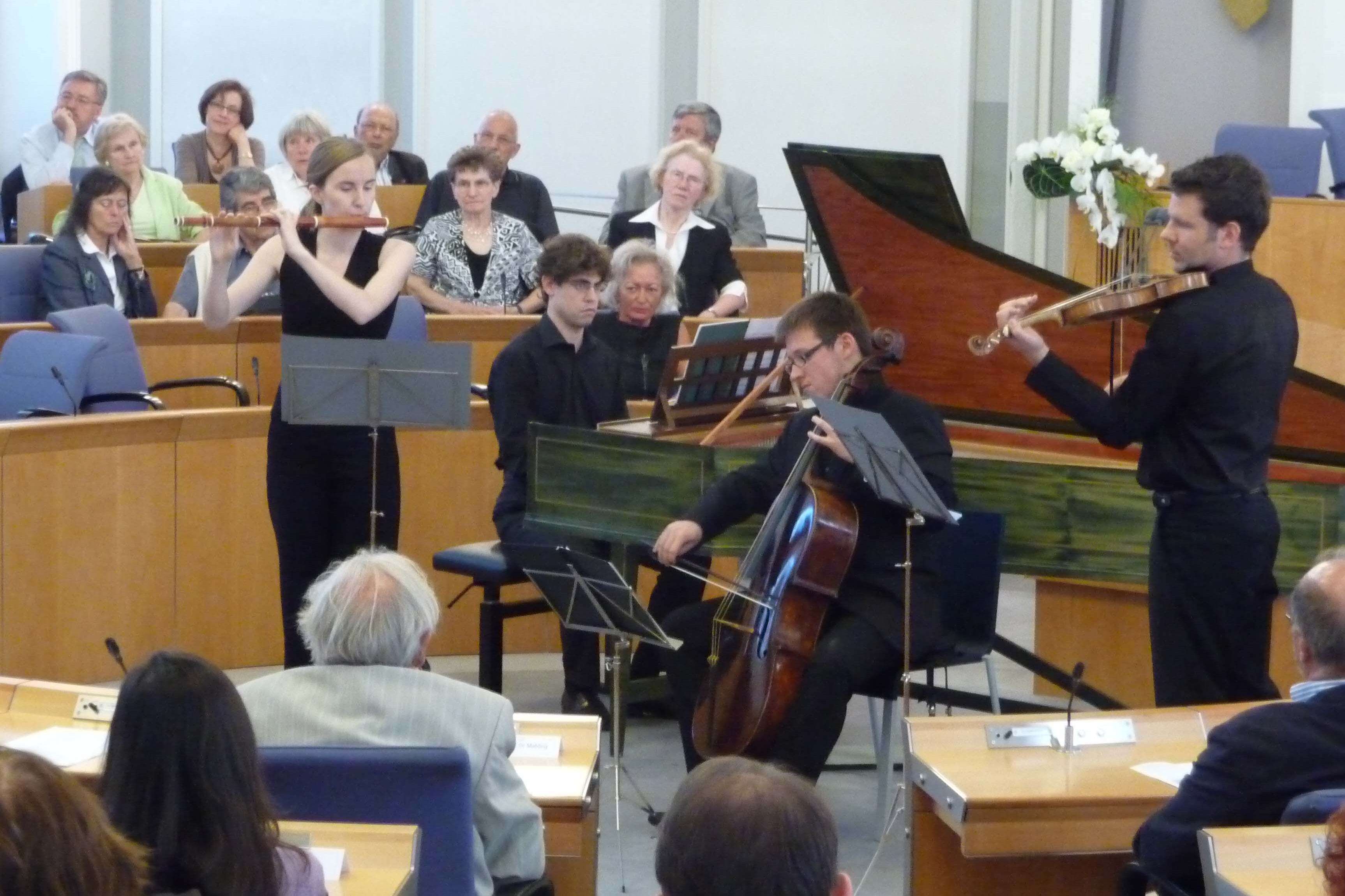 Am Dienstag, den 15. Juni 2010 fand anlässlich des Erscheinens der Neuausgabe der „Essercizii Musici“ im Plenarsaal im Landtag Rheinland-Pfalz ein Gesprächskonzert mit Solo- und Triosonaten von Georg Philipp Telemann statt. Die Moderation des Abends hatte Prof. Dr. Wolfgang Hirschmann aus dem Projektleitungsteam der Telemann-Ausgabe übernommen. Musikalisch unterstützt wurde er durch das Ensemble Diderot mit Johannes Pramsohler (Violine), Anne Pustlauk (Traversflöte), Tomasz Pokrzywinski (Violoncello) und Paolo Zanzu (Cembalo), das eine Auswahl von Stücken aus dem Band musikalisch präsentierte.