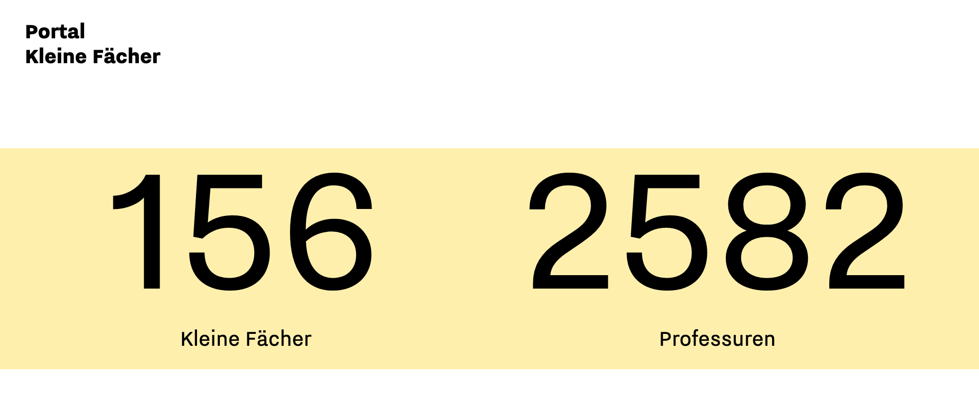 Das Portal ›Kleine Fächer‹ widmet sich den universitären Fächern, die nicht mehr als drei Professuren pro Universitätsstandort besitzen und somit als kleine Fächer in Abgrenzung zu mittelgroßen und großen Fächern verstanden werden...