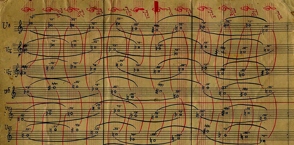 Ausschnitt aus der Suite op. 29 (1925–1926): Bidirektionale Reihentafel © Arnold Schönberg Center, Wien
